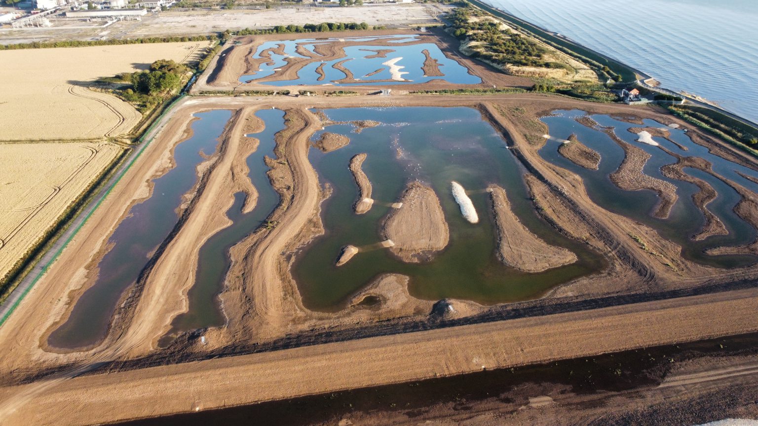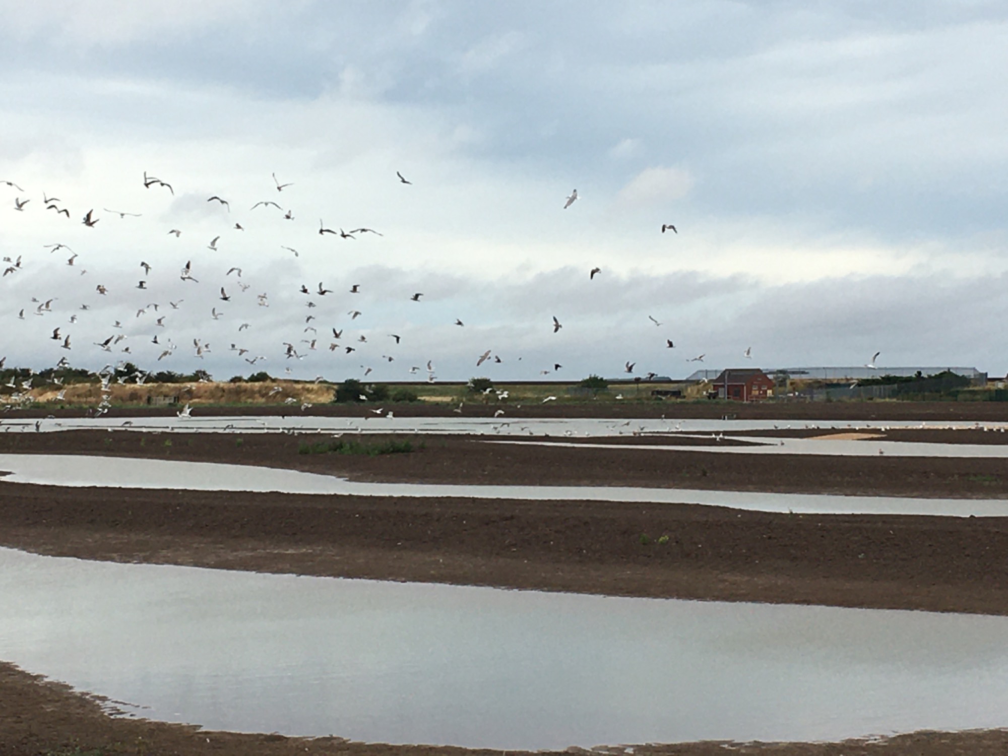 Had a brief walk around the perimeter this morning. Scrapes are built, lots of pipework pointing into the lagoons and the breeze block building I assume will be a new pump house judging from the pipework at the side. Very popular with gulls at the moment.