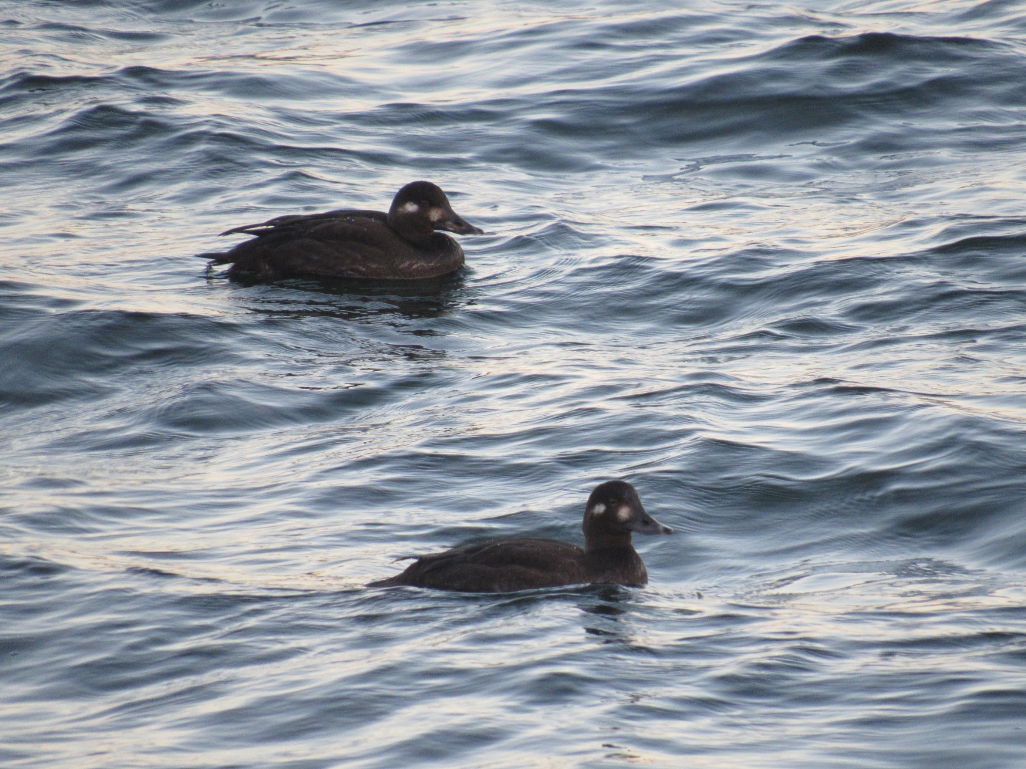 I caught up with the two velvet scoters at 3.45pm today. Light was fading fast but luckily they were very close to the water sports building. In 20 or so minutes there, I also happened on a drake goosander, a goldeneye and a dozen gadwall.
