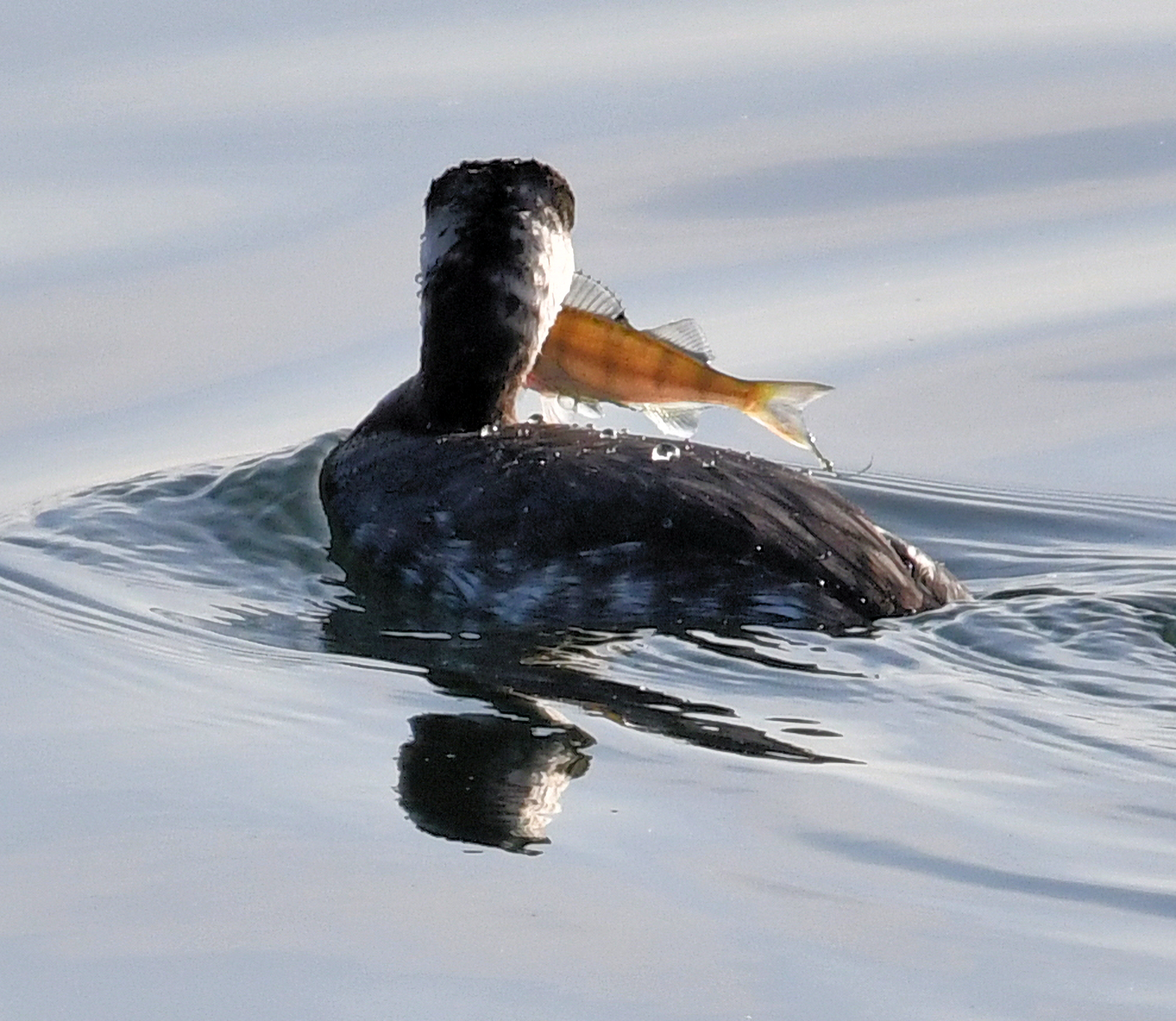 The Slavonian grebe showing well this morning. Goldeneye and Pochard also present