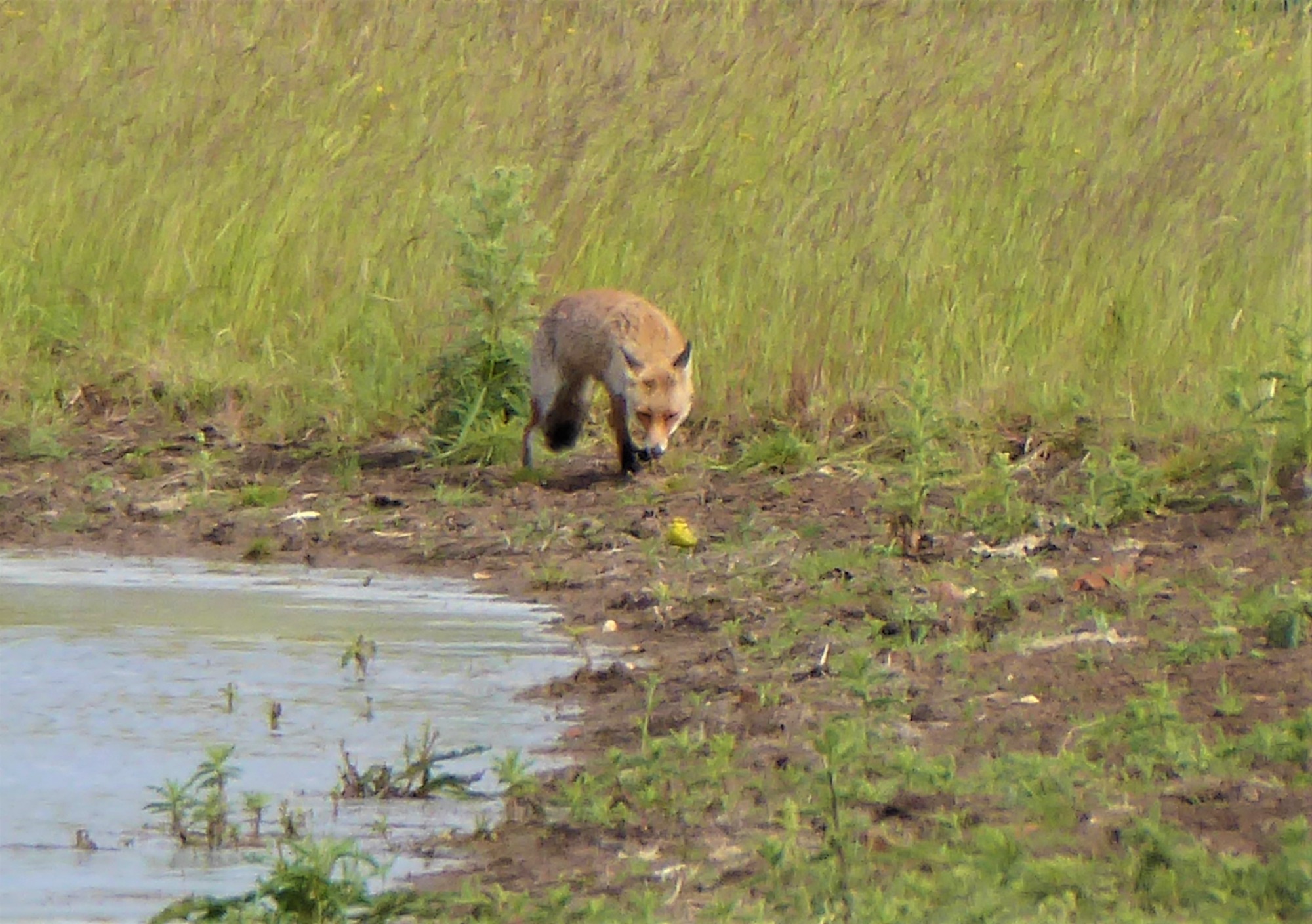 Good to see the Avocet chicks doing well, along with a few Lapwing chicks too. Blackheads still on nests, but a couple of chicks in the mix amongst them. It was a hive of activity along the main lagoon edge as the sun came out and the insects went into overdrive. This activity brought out a rather splendid Yellowhammer, who was cramming as much in his beak as possible. Also a pair of yellow Wagtails running up and down the waters edge too. The first fox I have seen at the site made an appearance up near the pump house, wagtails keeping a few feet in front of him/her.