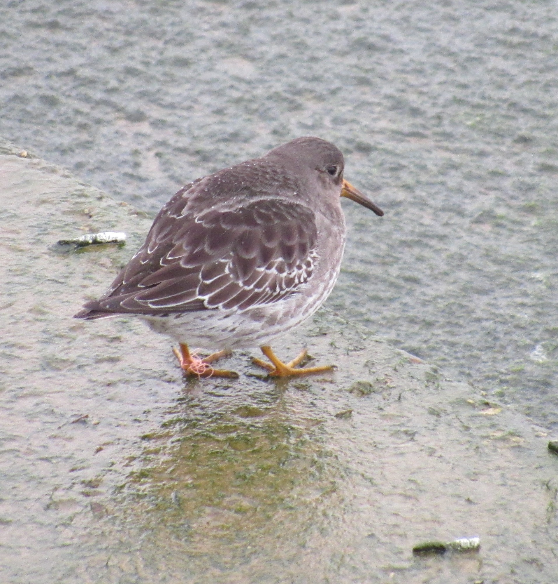 Found the purple sand at high tide this morning opposite Scoops ice cream place on the north prom. Watched it for 45 mins feeding ok and flying down from the groyne, but a bit concerning that it was on 1 leg for all but 1 second of that time - even while feeding and in the water. The leg is there but could be injured