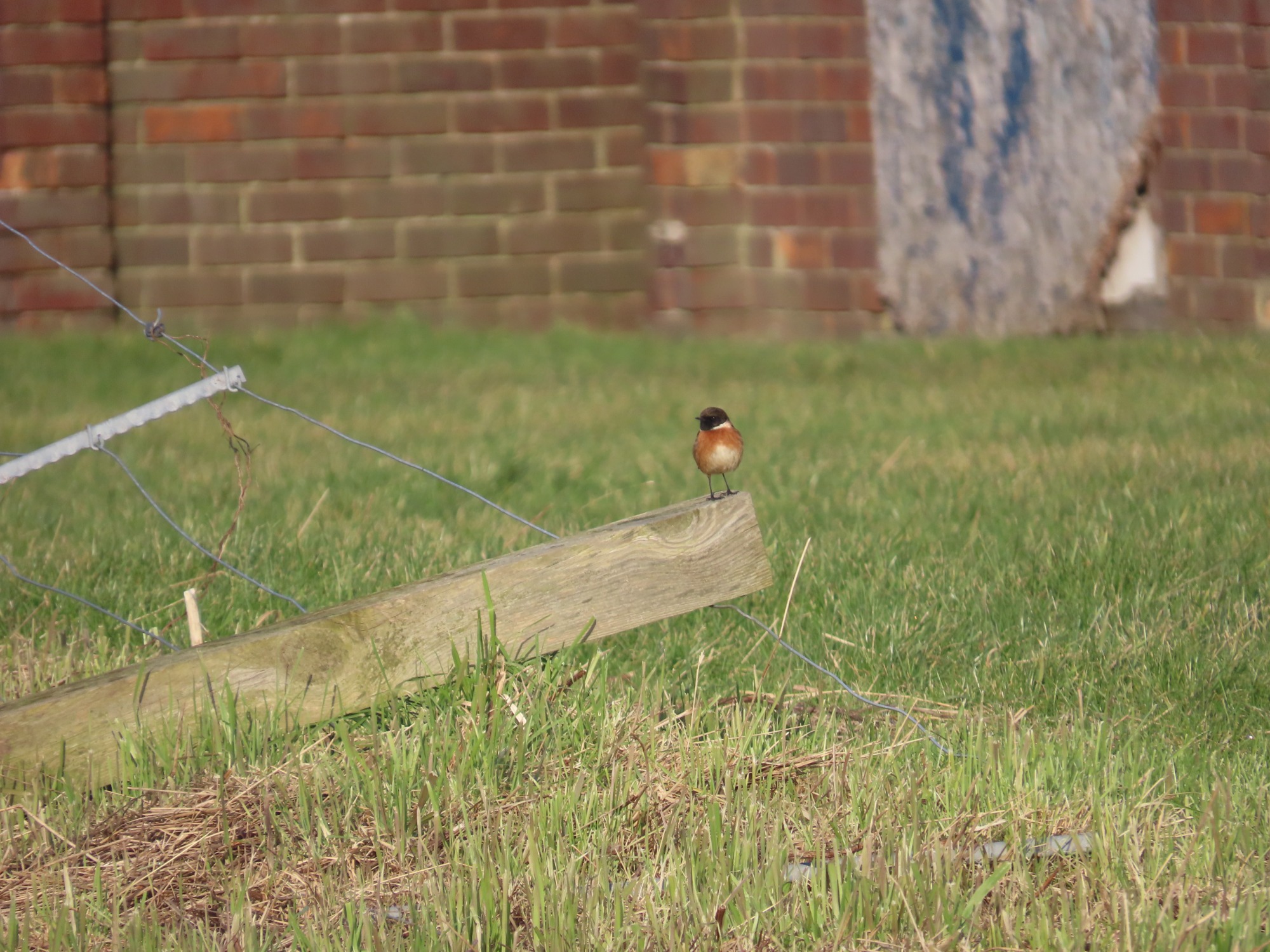 A male Stonechat was behind the foreshore chalets, and c 100 Brent Geese were resting/feeding on the mudflats beyond the leisure centre.